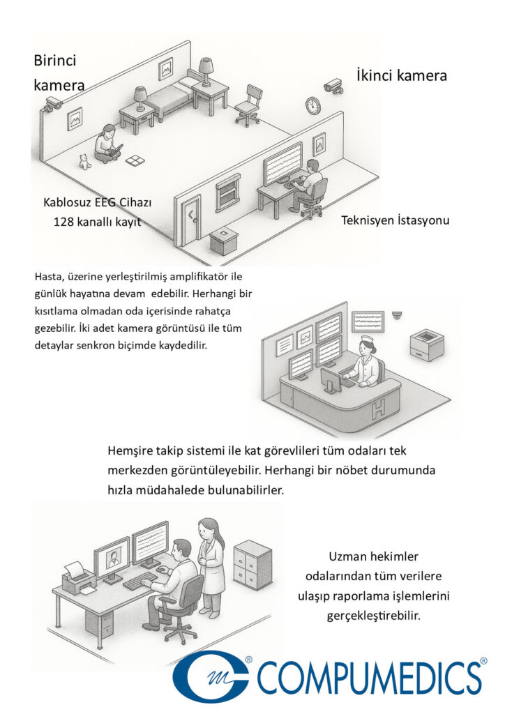 32/64 ve 128 Kanallı olarak üretilmekte olan Uzun Süreli EEG Monitorizasyon cihazlarımız sizlere gerçek bir profesyonellik sunar. Hastalarınız günlerce kliniğinizde yaşam kalitelerinden birşey kaybetmeden kalabilirler. Nöbet kayıtlarınız gelişmiş kameralar ile kaydedilir ve her ayrıntı gözden kaçmayacak biçimde size sunulur. Gereksiz yerler hızlı biçimde kısaltılır ve kayıt makineleriniz hiç dolmadan çalışır.